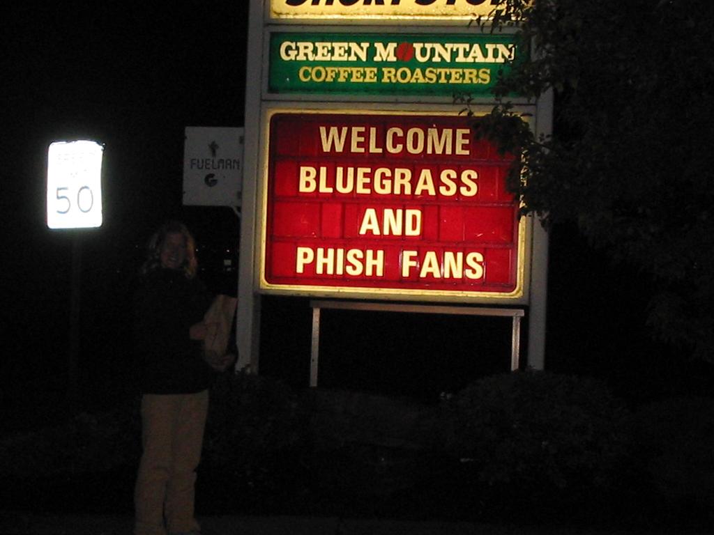 We found the line (of cars) at around 2:30 in the morning, and only had to wait 4 cars to turn left into the main line, but there were headlights as far as we could see to the right of us... so I guess we lucked out and came the "magical" way. The line moved very slowly, but at least it was moving. I was glad to finally take off my seat belt so I could take part in the front-seat conversation and stand outside the car for a bit. There were funny signs on the way, asking people to keep Vermont clean and to not litter. This was my (and our) favorite: