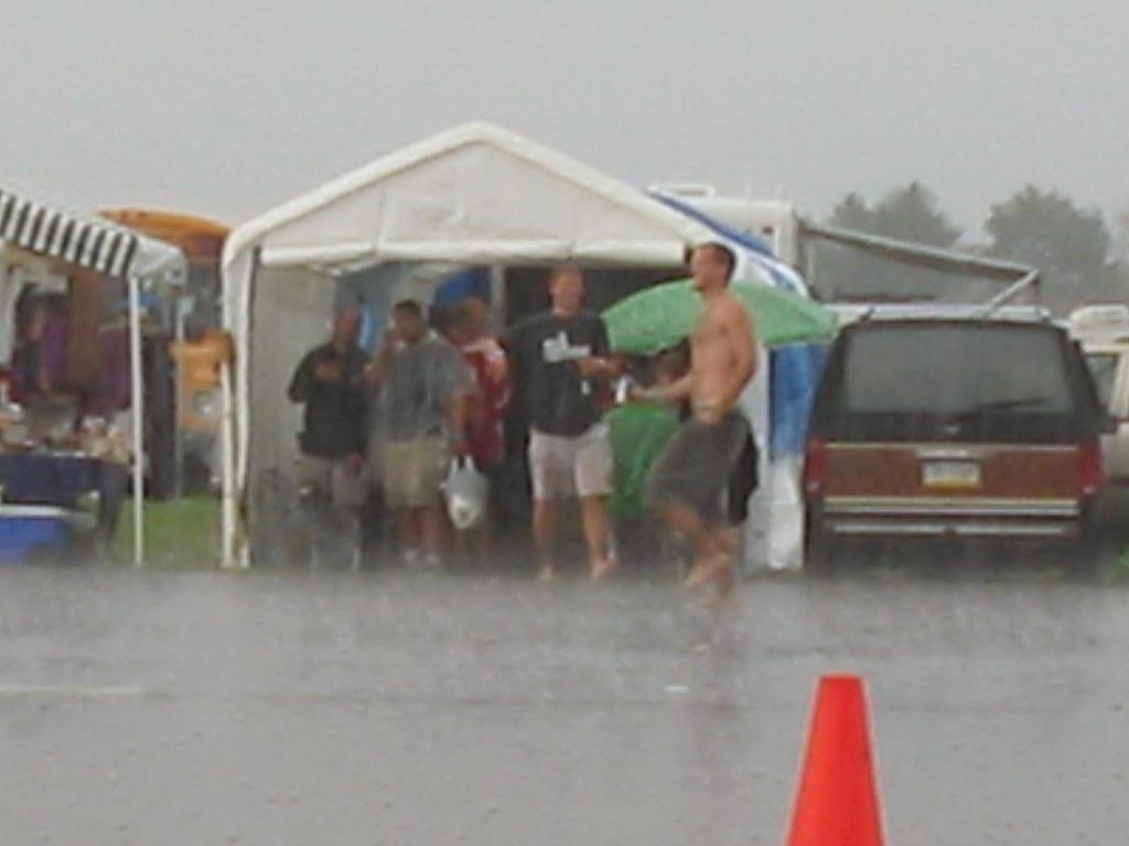 We realized that wasn't working, so we got up and tried to make our way back to Pythagoras, but as soon as we reached the nearest runway, it started raning incredibly hard. We ducked into one of the vendor tents to avoid the worst of it, which was right across from the "rave tent", where they were playing techno mucic all weekend w/ flashy lights. We never went in there but, there was some dude right outside of it dancing as if it were the happiest moment of his life. I found that inspiring.