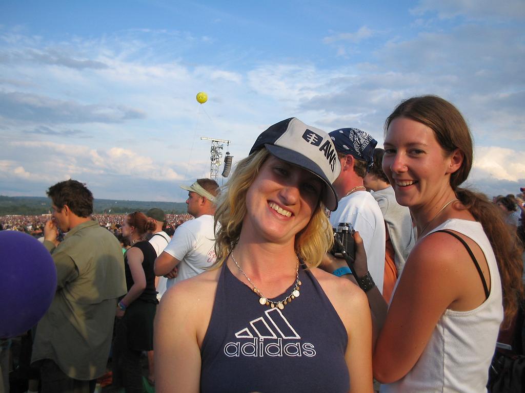 This day, I was just wearing my tennis shoes and black socks, since the mud wasn't nearly as wet as the last two days and while my socks were wet, my shoes did a good enough job of keeping out the mud. Before I knew it, it was concert time again. Although you weren't supposed to bring alcohol into the venue, we loaded up a bag of beers and snacks, a champagne bottle and tons of water and headed for the venue. It was a gorgeous, warm day so I brought my camera and got tons of good pictures.